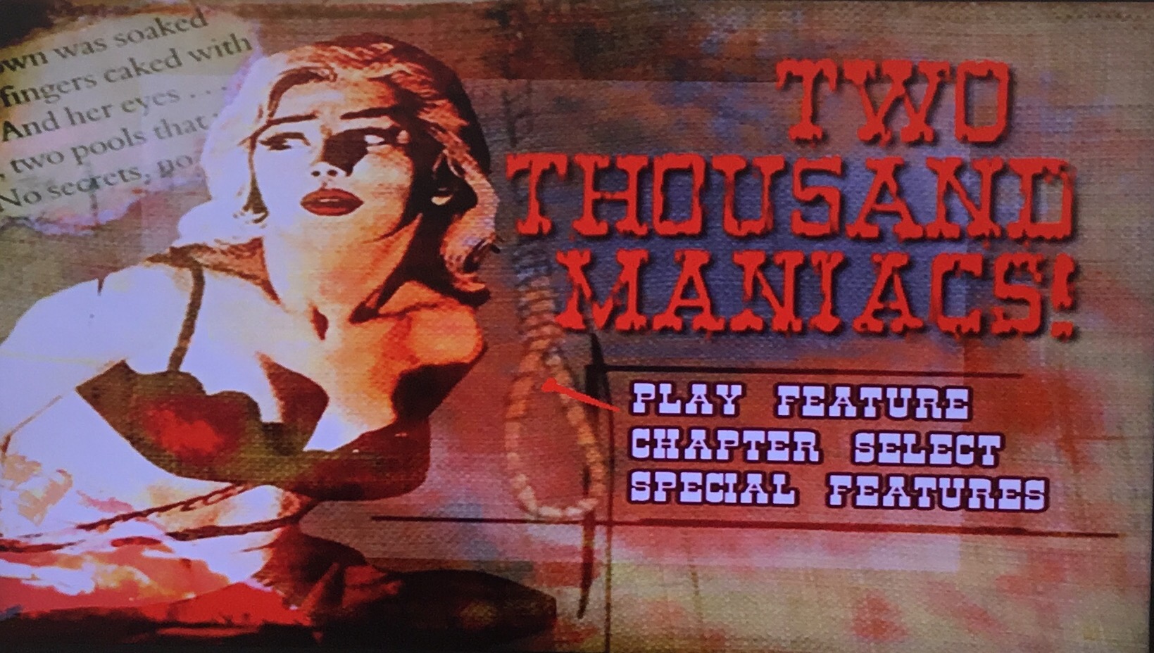 Extras: Only three extras on this disc. There are trailers for both Two Thousand Maniacs! and Blood Feast, and some outtakes from the making of the film, which aren’t exceptional except for the fact that they are so old and the fact they even still existed was a miracle.