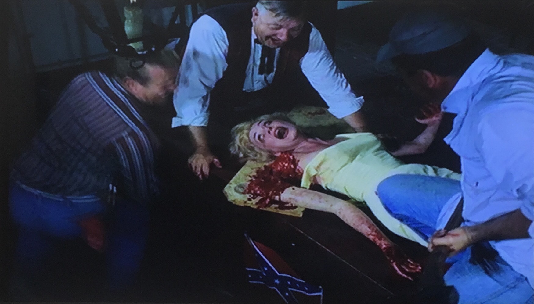 The awesome thing here though is that Lewis wrote, directed, filmed and wrote the music for this film, including singing the song that’s heard several times through ‘The South’s Gonna Rise Again’.