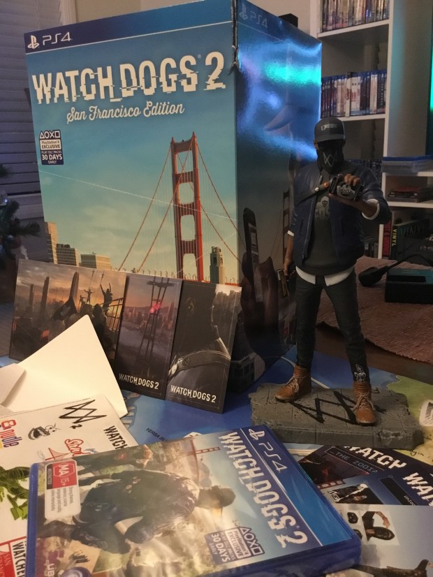 Watchdogs 2 from Ubi-soft. I liked the first one but wasn’t going to worry about this, but when EB Games discounted the edition with the statue, I leapt on it. I’ve played about 30 minutes, and totally dig it, though like with all video games, I’m not very good at it.