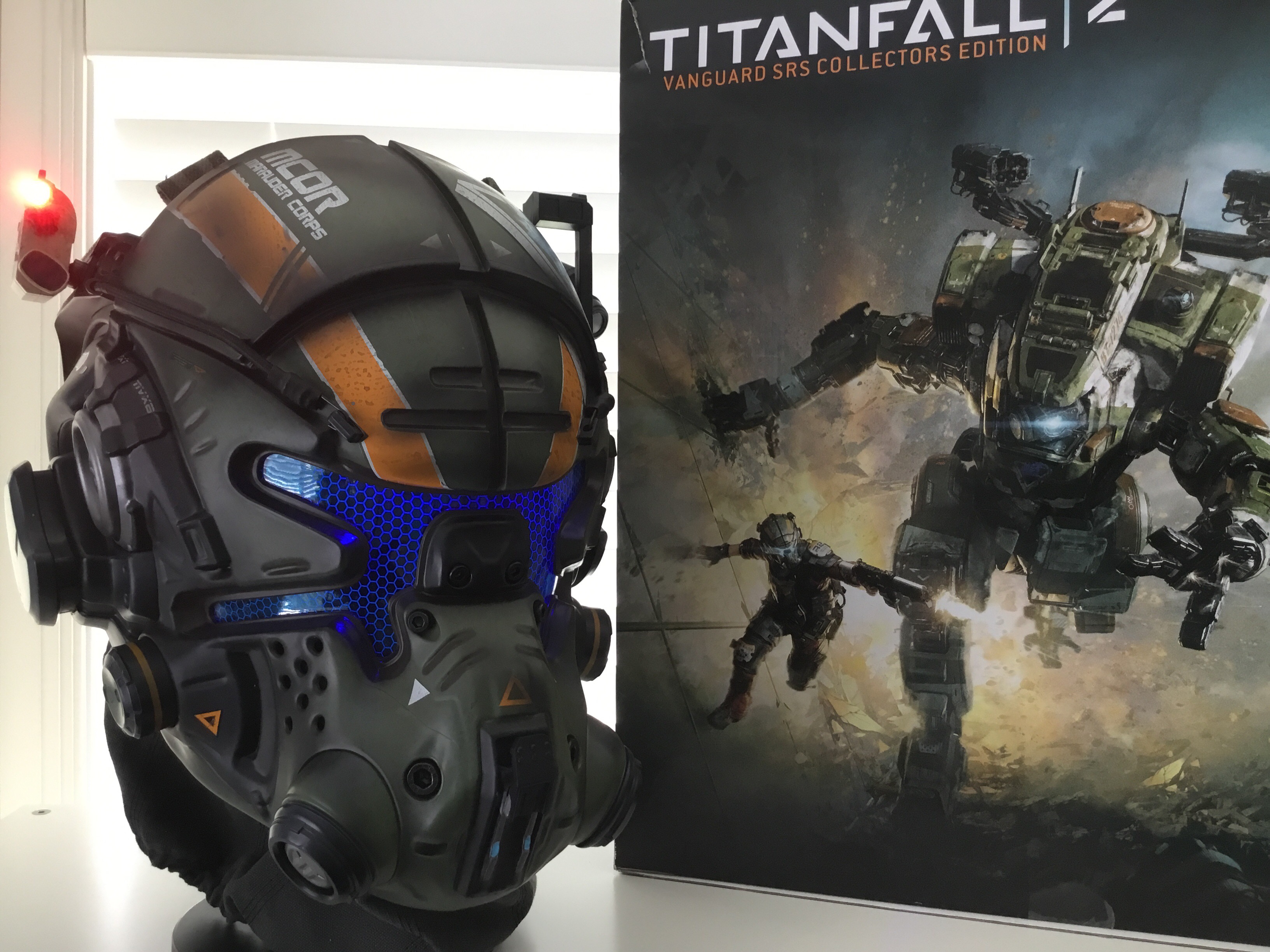 I grabbed Titanfall 2 when it first came out, but didn’t want to make the investment of $400 odd bucks to grab this helmet… thankfully, the Boxing Day sales continued and this, helmet only, not the game and other stuff, I managed to grab for $65. I’m as happy as I could be, this thing is awesome, and goes nicely with my Assassin’s Creed Hidden Knife and my Gears of War gun!