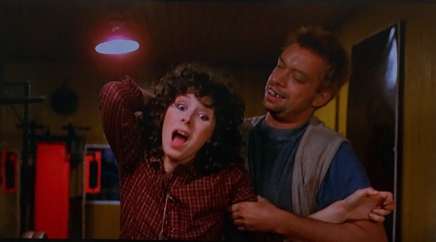 The hillbilly family seem to also represent this weird, modern day (well, for the early 80s) commentary on consumerism and self-help guruism, as their house in preposterously filled with televisions and name products, not to mention gym equipment and muscle magazines… even when they get a camera, it’s referred to as ‘the Kodak’.. all in attempt to make themselves ‘citified’ instead of ‘backwards’. I’m not sure if the message here is that ‘citified’ folk are savages, or that you can’t change where you come from no matter how hard you try to spend money to do so.