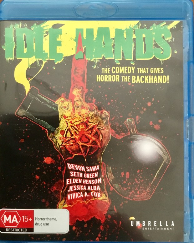 Format: This Australian region B bluray of Idle Hands runs for approximately 92 minutes and is presented in a spectacularly sharp 1.85:1 image with a matching DTS-HD 5.1 audio track. The extras, however, are not as sharp.