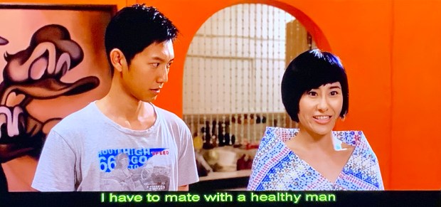 This totally bizarre film goes like this: in 2046, an alien race known as Xucker, through their attacks on Earth and the resulting radiation, have reduced male fertility by 99%, and so the human race is dying out. A girl named Future (Macy Wu) has been sent back in time to 2011 in order to collect ‘good’ sperm to repopulate the human race, but somehow the Xucker learn of this plan, and have also sent their best operatives, known cleverly as Xucker Number 1 (Kato Takako) and Xucker Number 2 (Hsueh Ya-Wen) to stop her.