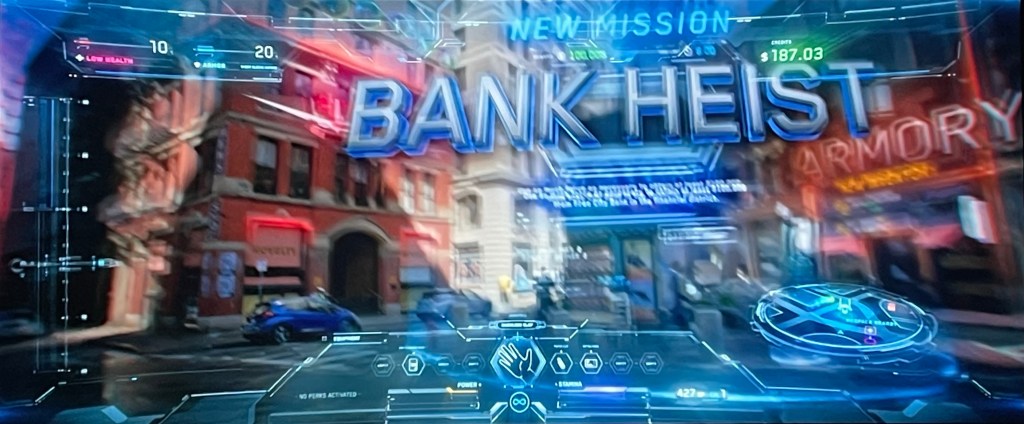 The effects in this movie are excellent too. Free City feels like an established game with a huge population, with some people being really good at it, and the occasional filthy casual (which is essentially me online) just sucking. The effects of the world when one is wearing the glasses is probably over gamified, but it clearly is holding your hand so you can tell the difference between the NPCs and the players impression of the world. At times it feels like it might be a scathing look at the online committee of