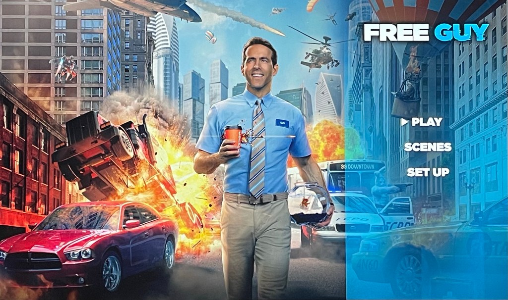 Free Guy tells of Guy (Reynolds), a middle aged bank teller living in Free City, who longs to feel love. He’s generally happy with his life, tolerating the constant violence from the ‘sunglasses people’, who are ‘heroes’ who’s work he admires, even when they are robbing his bank or murdering his friends.