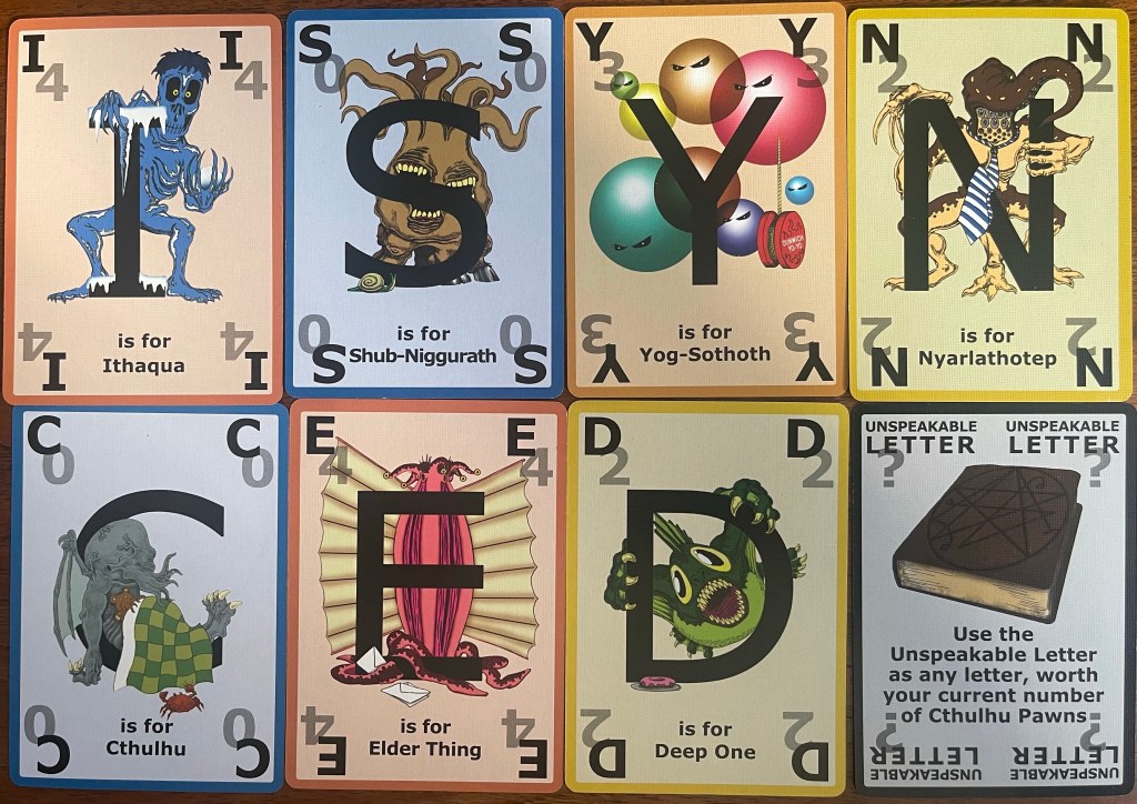 This game is a lot of fun for people who love word games, and luckily, me and my family do! If you DON’T like word games, this probably isn’t for you no matter how much of a Lovecraft fan you are, this is especially true as the theme is quite thinly laid over the game.