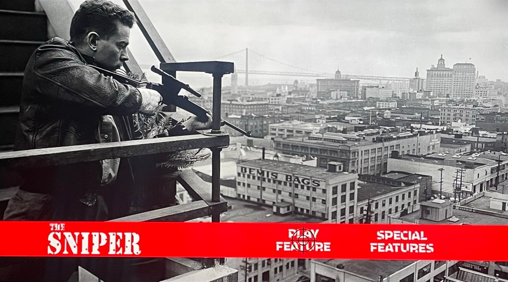 The Sniper was written by Harry Brown, the screenplay writer of the original Oceans’ 11 from a story by Edna Anhalt, and directed by Edward Dmytryk, who gave us other noir films like Crossfire, Obsession and Cornered.