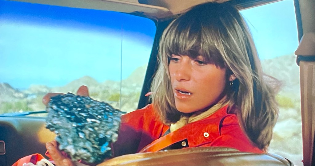 On their way, one of the team Burt (Michele Saovi) finds one of the blue rocks and gives it to Thelma, knowing she loves geology, and of course for some strange reason, she takes it with her into the cave system.
