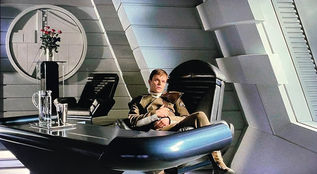 This leads me to the design. Looking like a combination of Star Wars Episode 1, which makes sense due to the timing of its release and the fashion for sci-fi design at the time, and of the ‘landing party’ scenes in any episode of Star Trek post The Next Generation, nothing looks real, and instead the entire film looks like ‘TV’. The outfits are a combination of medieval heraldry and post 90s comic book costume design and just look terrible. Of particular, Baron Harkonnen’s dress is borderline hilarious, not helped by McNeice’s panto performance.