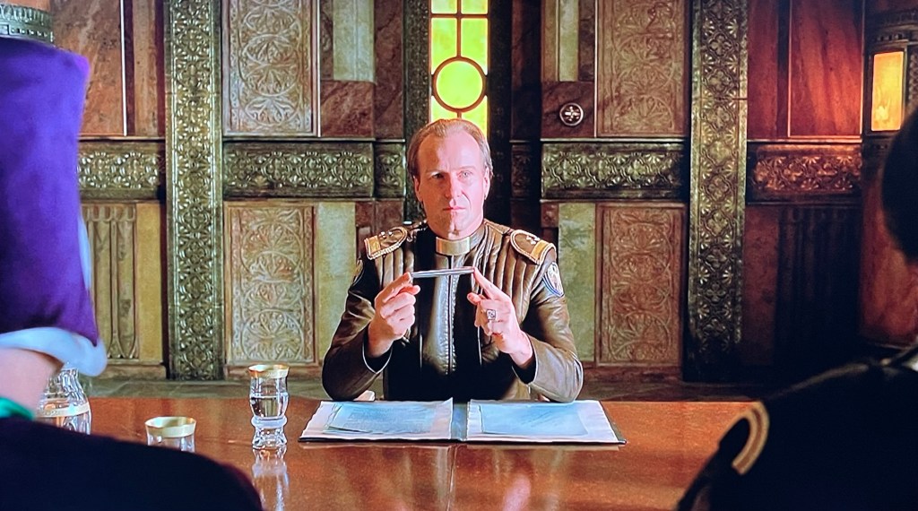 First the special effects are exactly what one would expect from a TV show from 25 years ago (as of the date of this reviews writing). I imagine a production with SO many actors within it that was on television would have not dedicated too much of the budget there, and it shows. I’m sure somewhere there is a PlayStation 2 laughing at the quality of the effects. Now considering many if my favourite films are ones with decidedly sub-par effects, it seems to me that the Lynch film was given far more for its budget, double actually, and obviously the 2020s version have had even more thrown at them, which makes the effects look… well, like a TV show, but worse, an early 2000s TV show. Credit where credit is due though, the UV reflective contact lenses on the Fremen look alright.