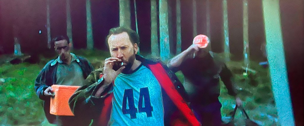 Of course, as one would expect, Nic Cage is the utter highlight of this piece: madder than a cut snake and nuttier than squirrel poop, Red tears through the third act of this film… you know how people describe films with Cage going crazy as ‘he goes full Cage’… well that doesn’t even begin to describe this.