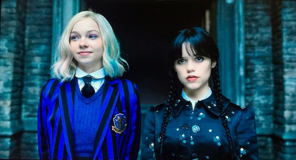 This idea, combined with standard teen detective girl tropes started in 1954 with Edward Wheeler’s New York Nell and popularised by Nancy Drew books in the 1930s which carried forth through TV series and movies of the same name, along with other characters like Veronica Mars, Enola Holmes and many others. Twisting the goth girl Wednesday into a Scooby Doo-like mystery series seems to be a match made in a dark, spooky, black lace decorated heaven.