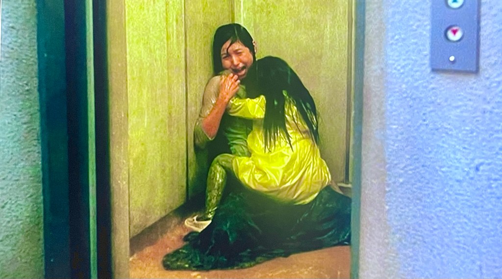 Now this film is well acted by the cast, and honestly the state of disrepair that the apartment block reveals a Japan that I never knew existed as everything always seems either very new and clean, or traditional and well-kept, but the building is almost a brutalist blight on the opinion that Japan presents itself in its media. I found that to be strange and exciting and does actually really set the tone of being wet and moist and clammy.