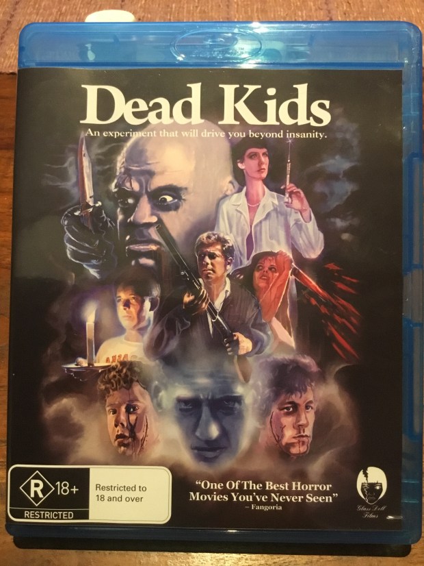 I didn’t see that as my job: I saw it as being paid $30 to watch whatever horror films I wanted to, and during my time there, there were a few films that I always put on in the afternoon: Dawn of the Dead, The Neverdead (aka Phantasm), Dead and Buried and this film, Dead Kids (also called Strange Behaviour by countries who don’t think Dead Kids is the BEST exploitation title ever!)