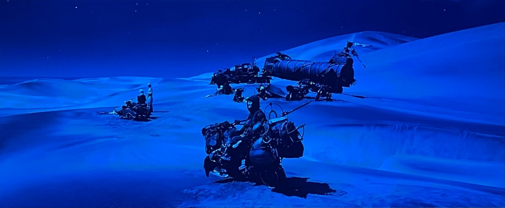 Miller has also created this series of landscapes that are an absolute feast for the eye. Considering mostly in ‘wasteland’ films, the brown dusty desert is the general visual tone, but here the wasteland changes as the journey is taken, and the images of fire and explosions are so bright that they are almost cartoonish.