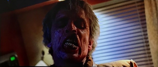 Wood’s performance as Frank is amazing too. When you consider he is really only seen in reflections or in flashbacks or on occasion to show time lapse or to see the release he gets from Murder, he has a genuine presence in this film. Even when he isn’t seen, he is generally heard, as there is a constant sound of his breathing which weighs heavily in every scene. It seems he was made for this role as his sudden acts of violence, which won’t disappoint gore fans, are completely offset by his almost child-like looks and mannerisms.