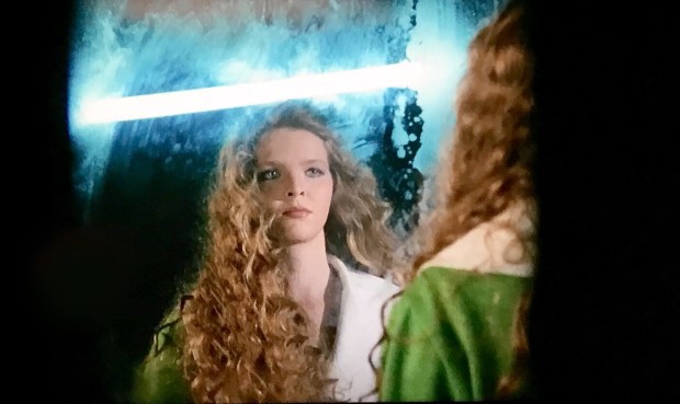 The part is for whinging superbitch Sally (Coralina Cataldi Tassoni) who complains about everything and locks herself in her bedroom after hearing that a person whom she didn’t want invited to her party was actually invited by a friend. Whilst in her room, she watches, like several people who live in the block, a documentary about the demon incursion that occurred in the first film. Unfortunately, like the film from the first film, the doco appears to be cursed… or something… and a demon comes out of the TV, attacking Sally and starting the infection all over again.