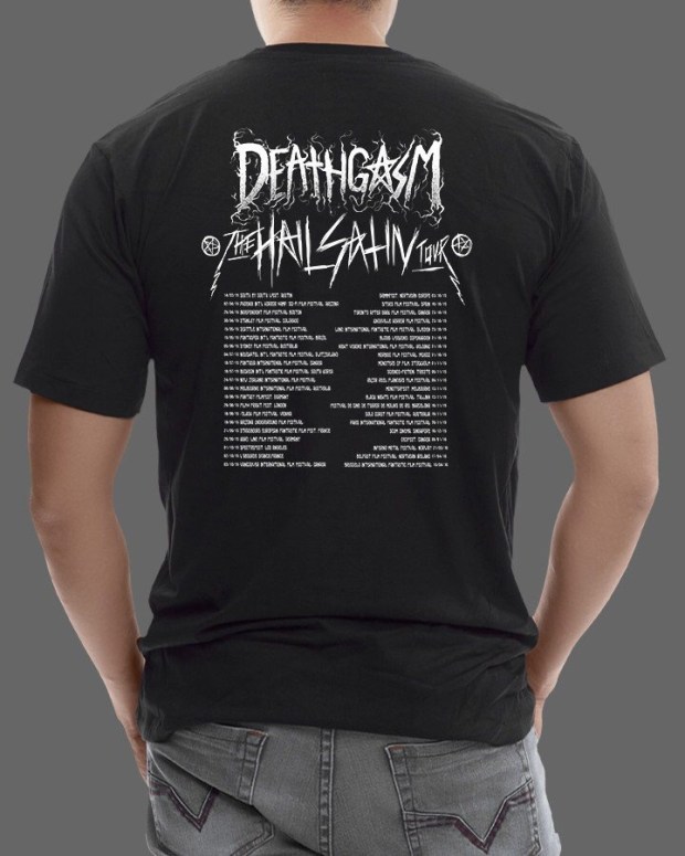 The first shirt is from the New Zealand film Deathgasm, and is presented as an awesome tour shirt: