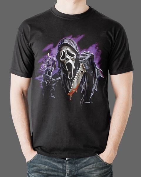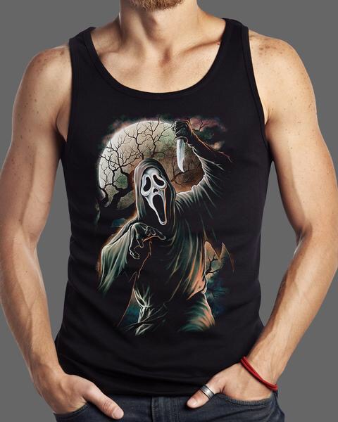 Now send your mind back to 1996 when Wes Craven saved horror from becoming the new western, and all but disappearing from cinema altogether. He created another definitive horror icon in Ghostface, and… It’s about time… His iconic Edvard Munch-ish ‘Scream’ Ghostface masked killer will be available on T shirts as of 27th July.