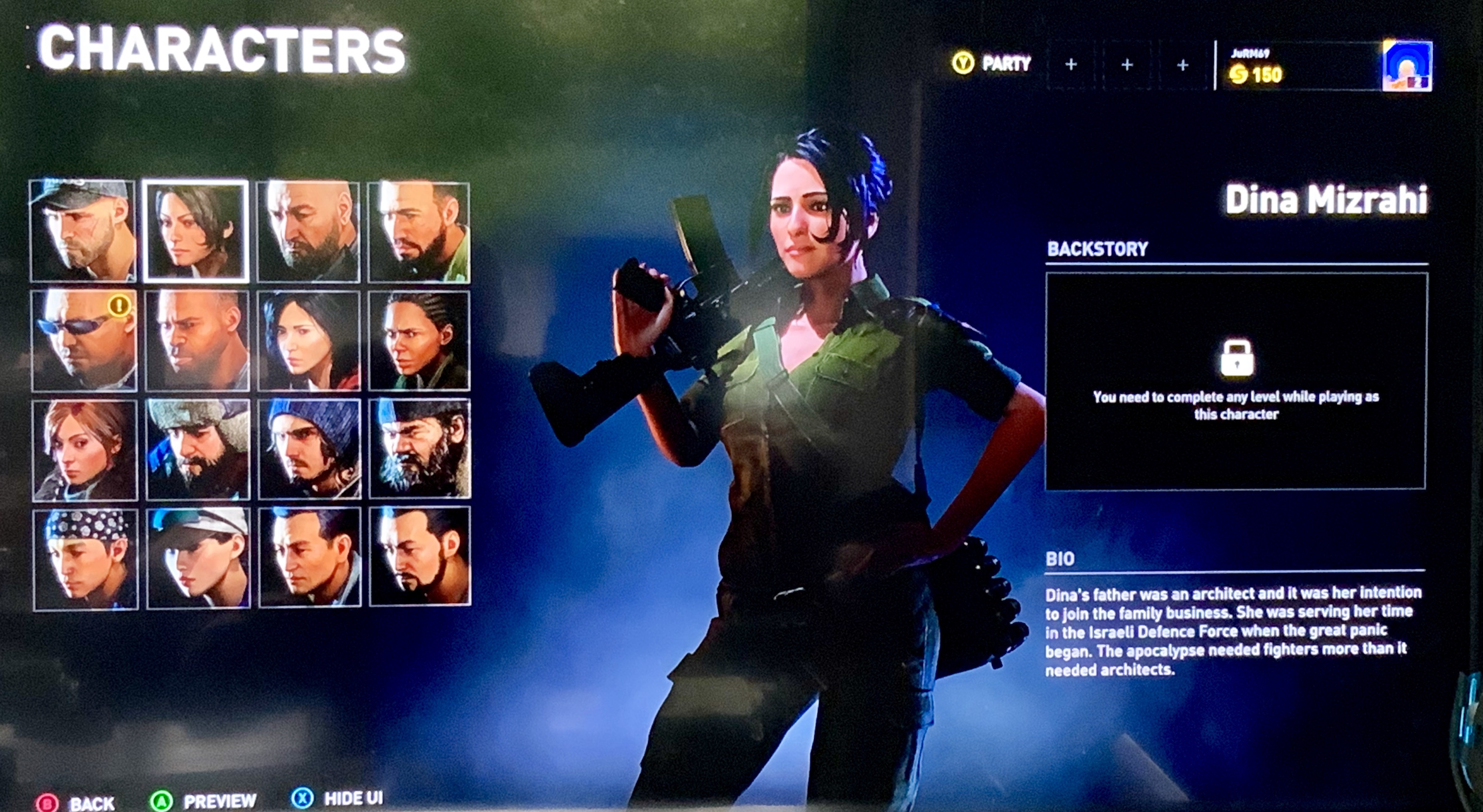 This game is made for an online experience but so far I have not been able to get a game online and none of my friends play so I haven’t been able to convince any of them to get it, even though it has a budget price point of $50 (in Australia on release). Subsequently I have been playing this game offline in a local environment with bots playing as my three compatriots. This is a third-person view game and the character archetypes are all interesting and relevant to the environment they exist in ie the New York levels have a bunch of ‘New York’ looking characters, whereas the Israel levels have a more military feel. Each of these characters also have a backstory to see once you have finished any level with each of them.